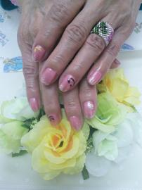 ピンクベージュの全塗りにポイントでベッコウアートをいたしました(*^^*)