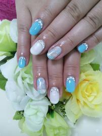 ブルーとホワイトの全塗りにポイントでタイダイアートと