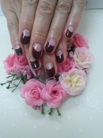 ボルドーの逆フレンチにラメラインを入れました(*^^*)