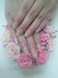 イエローのラメグラデーションにポイントでストーンアートをいたしました(*^^*)