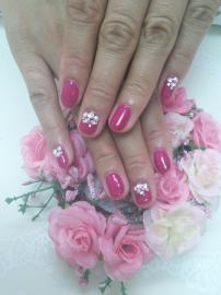 ピンクの全塗りにストーンを乗せました(*^^*)