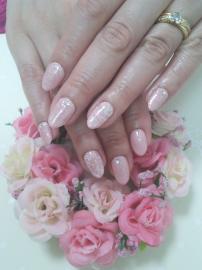 ピンクの全塗りにストーンを乗せました(*^^*)