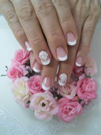 白のフレンチにポイントでフラワーの3Dアートをいたしました(*^^*)