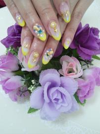 ハンドはイエローのフレンチにビジューアートをしてゴージャスにいたしました(*^^*)