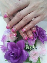 ピンクのグラデーションにラメアートと