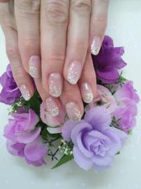 ピンクの逆フレンチにラメラインを入れて