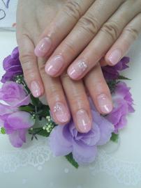 ピンクのフレンチにラメラインとポイントでストーンを乗せました(*^^*)