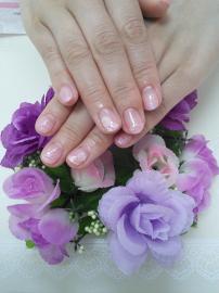 パールピンクの全塗りとスクエアフレンチにラメラインと