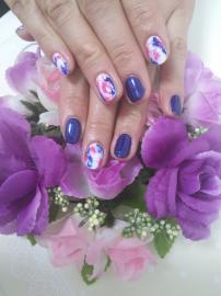 フットネイルとお揃いでネイビーの全塗りにポイントで