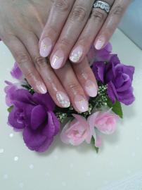 ピンクの逆フレンチにポイントでお花のアートをいたしました(*^^*)