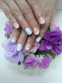 ブルーの全塗りの上にレースアートをいたしました(*^^*)