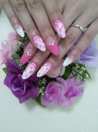 白とピンクの全塗りにフラワーアートをして