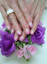 ピンクのラメグラデーションに桜のお花を乗せました(*^^*)