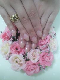 ジェルで長さを出して、ベージュのグラデーションで