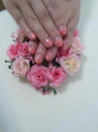 オレンジのラメのグラデーションでキラキラネイルにいたしました(*^^*)