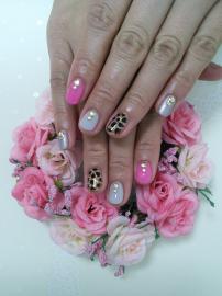 ピンク、ベージュの全塗りにスタッズを乗せて