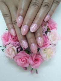 ピンクのグラデーションにポイントでツイードアートをいたしました(*^^*)