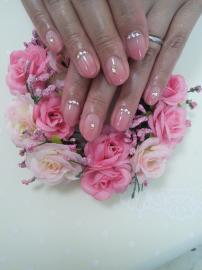 ピンクベージュのグラデーションにストーンアートをいたしました(*^^*)