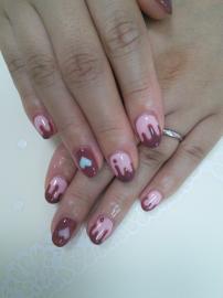 ピンクの全塗りにブラウンでチョコアートをいたしました(*^^*)