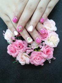 ピンクと白の全塗りにポイントでストーンアートをいたしました(*^^*)