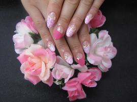 ピンクとホワイトの全塗りにポイントで