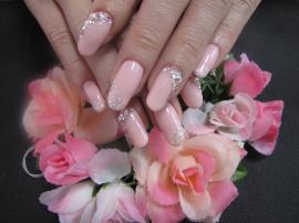 ピンクの全塗にラメ&ストーンを乗せました(*^_^*)