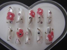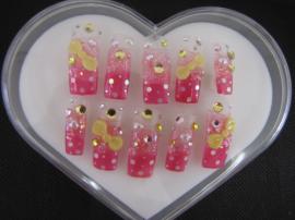 ロングスクエア 3Dリボン、ストーン 中指長さ3‡p