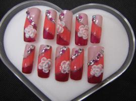 本日は成人式仕様に長さを出してピンクの逆フレンチにラメを散らしてストーンと3Dアートを施しました!(^^)!