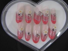 ロングオーバル 3Dお花、スワロフスキーストーンパール 中指長さ3.3‡p
