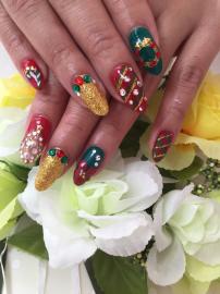 クリスマスカラーの全塗りにチェック柄、リース、ポインセチア、クリスマスツリーアートをいたしました(*^^*)