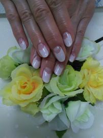ピンクとオフホワイトのフレンチに