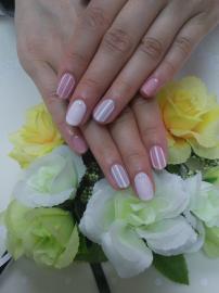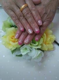 ピンクのフレンチとラメ入りピンクの全塗りに