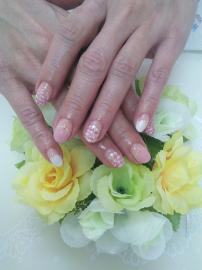 ピンク、白の変形フレンチにポイントでツイードアートいたしました(*^^*)