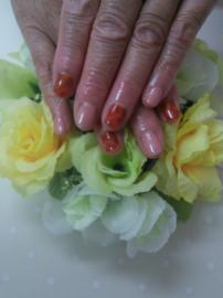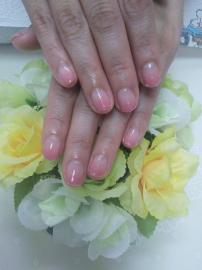 ピンクベージュの全塗りにポイントでベッコウアートをいたしました(*^^*)