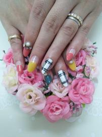 カーキ、オレンジ、イエロー、の変形フレンチに