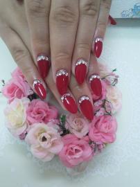 ワインレッドのカラーにラメ&ストーンを乗せました
