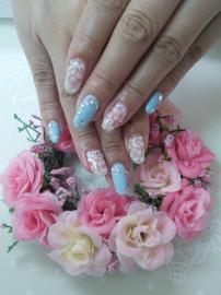 ブルー&ホワイトの全塗りにラメ&ストーンを乗せて