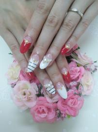 ホワイトと赤の逆フレンチに
